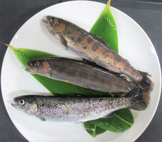 嬬恋村産の川魚です。(上からヤマメ、イワナ、ニジマス)